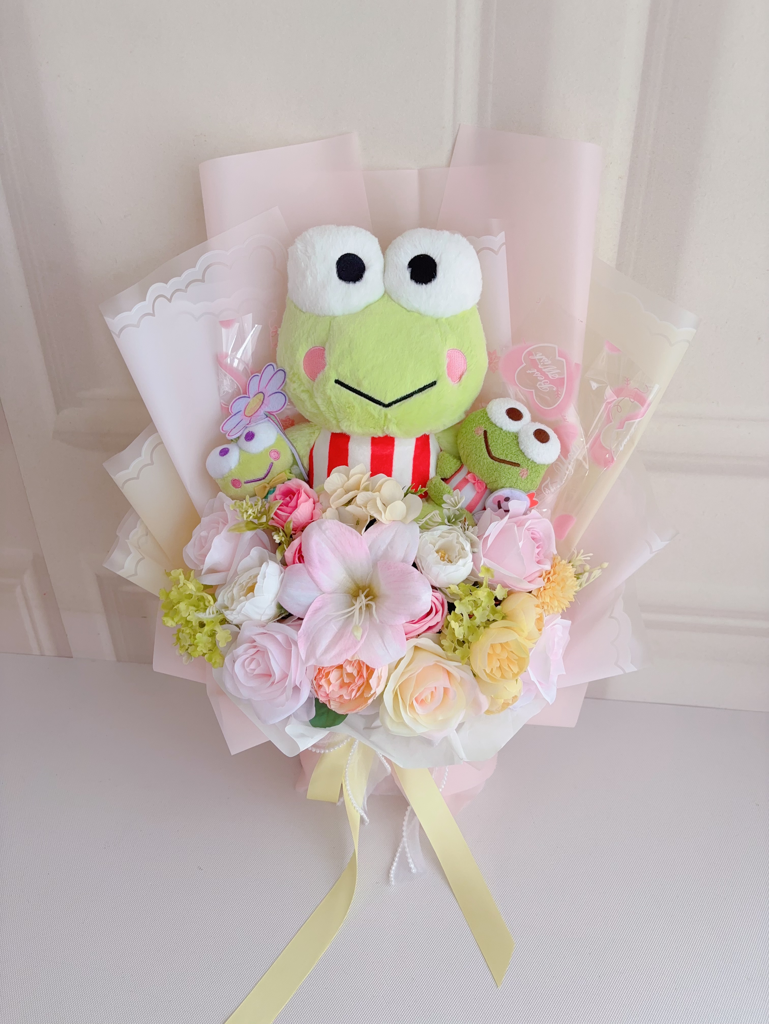 💁🏼♀️訂花whatsapp:(852)62501628 💁🏼♀️度身訂造可改絲花&花紙顏色 💁🏼♀️絲花,可永久保存,不會致敏,可以搭配任何公仔 💁🏼♀️地址:大角嘴通州街123號國貿中心(也可代約送貨師傅,加$80-$100送貨費送貨上門) #青蛙 #青蛙公仔花 #青蛙公仔 #公仔花束 #公仔花 #情人節花束 #生日花束 #絲花 #畢業公仔 #畢業公仔花束 #生日禮物 #週年禮物 #ck鼠 #keropi公仔 #大學畢業 #卡通花束 #絲花花束 #訂制公仔 #畢業禮物 #情人節禮物 #畢業花 #畢業花束 #網上訂花 #keroppi公仔 #情人節花 #keroppi #keroppi公仔花